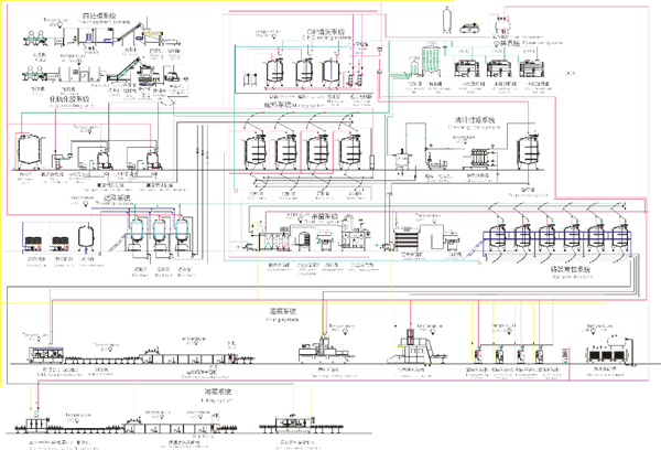 生產(chǎn)線示意圖包含生產(chǎn)線的各個(gè)生產(chǎn)環(huán)節(jié),清晰標(biāo)注在圖紙上,更直觀看出各個(gè)生產(chǎn)線環(huán)節(jié)及生產(chǎn)所需的設(shè)備。生產(chǎn)線示意圖包含了前期處理設(shè)備,cip清洗系統(tǒng)、公共系統(tǒng)、提取系統(tǒng)、過濾系統(tǒng)、殺菌系統(tǒng)、灌裝系統(tǒng)、后道包裝系統(tǒng),整條生產(chǎn)線更加人性化設(shè)計(jì),設(shè)備全部自動(dòng)化,減少了人工投入,同時(shí)更好的增加了產(chǎn)品生產(chǎn)效益。