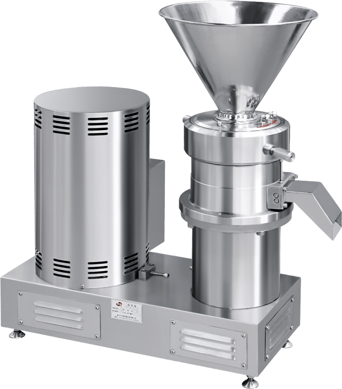 膠體磨是由電動機(jī)通過皮帶傳動帶動轉(zhuǎn)齒(或稱為轉(zhuǎn)子)與相配的定齒(或稱為定子)作相對的高速旋轉(zhuǎn),其中一個高速旋轉(zhuǎn),另一個靜止,被加工物料通過本身的重量或外部壓力(可由泵產(chǎn)生)加壓產(chǎn)生向下的螺旋沖擊力,透過定、轉(zhuǎn)齒之間的間隙(間隙可調(diào))時受到強(qiáng)大的剪切力、摩擦力、高頻振動、高速旋渦等物理作用,使物料被有效地乳化、分散、均質(zhì)和粉碎,達(dá)到物料超細(xì)粉碎及乳化的效果。破碎室設(shè)有三道磨碎區(qū),一級為粗磨碎區(qū),二級為細(xì)磨碎區(qū),三級為超微磨碎區(qū),通過調(diào)整轉(zhuǎn)子的間隙,能緊湊運(yùn)轉(zhuǎn),具有平穩(wěn)、噪音小、耐腐蝕、易清洗、維修方便等特點(diǎn)。目前是國內(nèi)濕法粉碎理想的設(shè)備。